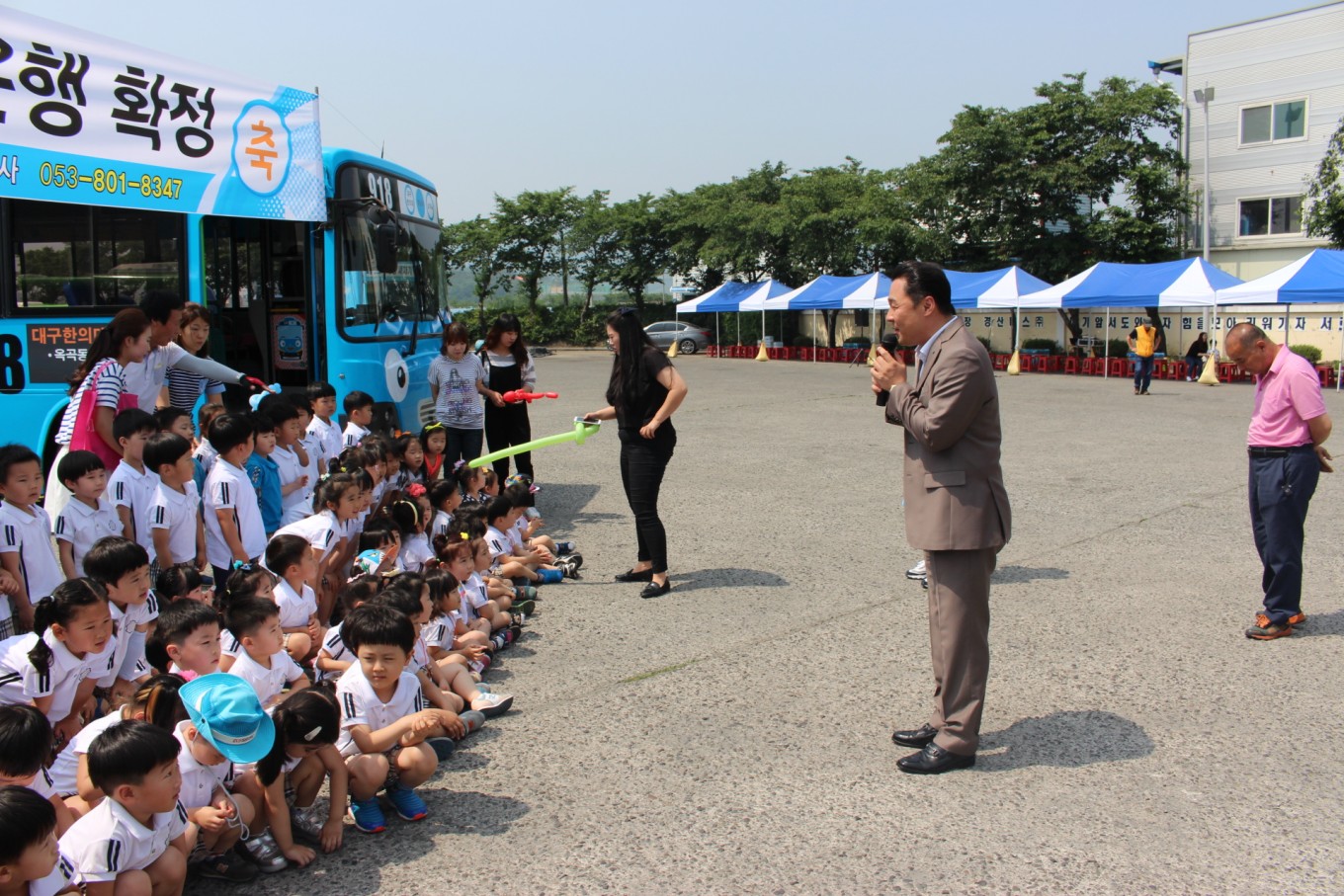 6월 1일 "꼬마버스 타요" 노선 운행을 앞두고 5월 31일 경산시 관내에 있는 어린이집과 유치원아들이 경산버스(주) 본사를 방문해 사진도 찍고, 탑승도 해보는 행사가 있었습니다.